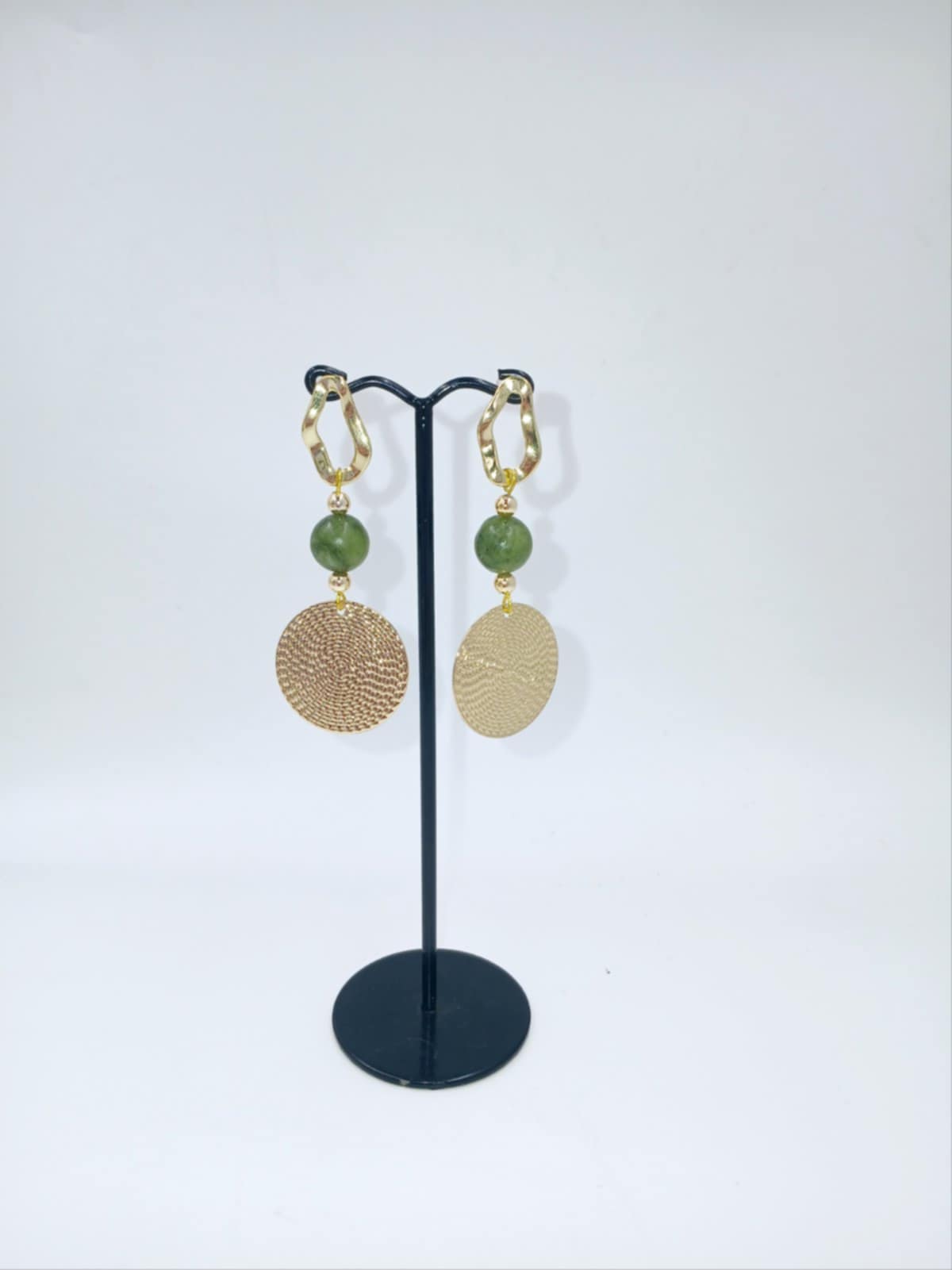 Χειροποίητα Σκουλαρίκια, ελληνικής σχεδίασης και κατασκευής, από επιχρυσωμένο ατσάλι με πράσινη πετρούλα. Ιδανικό για όλες τις ώρες της ημέρας και κάθε στιλ γυναίκας.