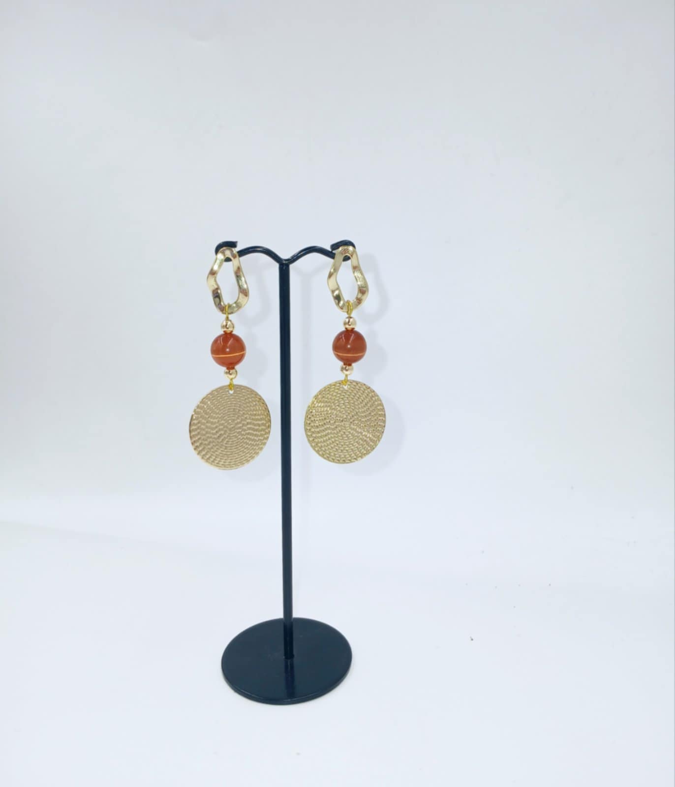 Χειροποίητα Σκουλαρίκια, ελληνικής σχεδίασης και κατασκευής, από επιχρυσωμένο ατσάλι και κόκκινη πετρούλα. Ιδανικό για όλες τις ώρες τις ημέρας και κάθε στιλ γυναίκας.