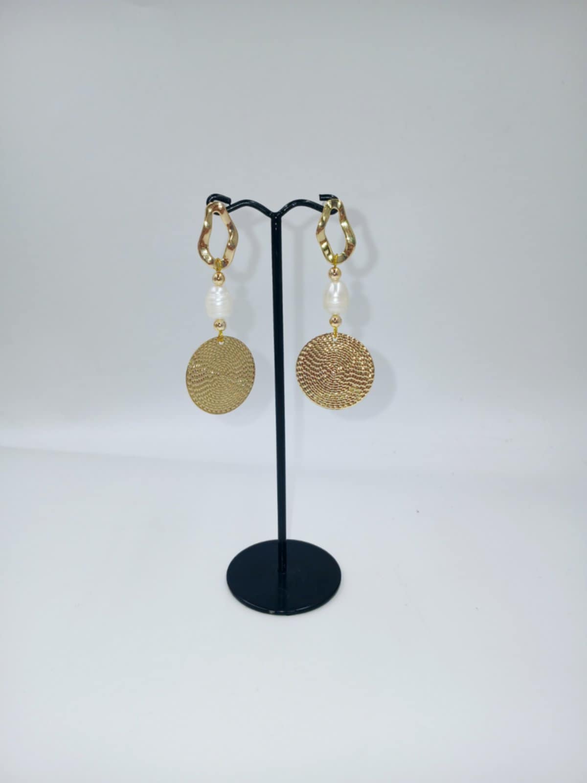 Χειροποίητα σκουλαρίκια, ελληνικής σχεδίασης και κατασκευής, από επιχρυσωμένο ατσάλι με περλίτσα. Ιδανικό για όλες τις ώρες της ημέρας και κάθε κάθε στιλ γυναίκας.