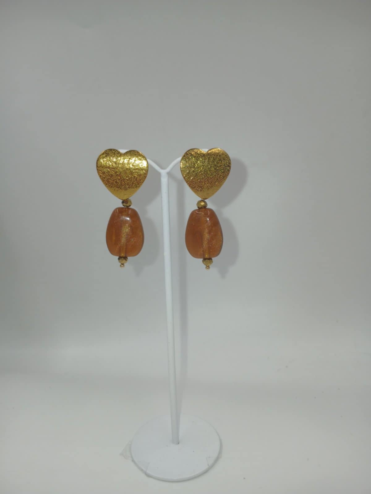 Χειροποίητα σκουλαρίκια, ελληνικής σχεδίασης και κατασκευής, από επιχρυσωμένο ατσάλι σε σχήμα καρδούλα. Η κομψή καφέ πετρούλα, καθιστά το κόσμημα ιδιαίτερα εντυπωσιακό. Κατάλληλο για κάθε στιλ και κάθε περίσταση.