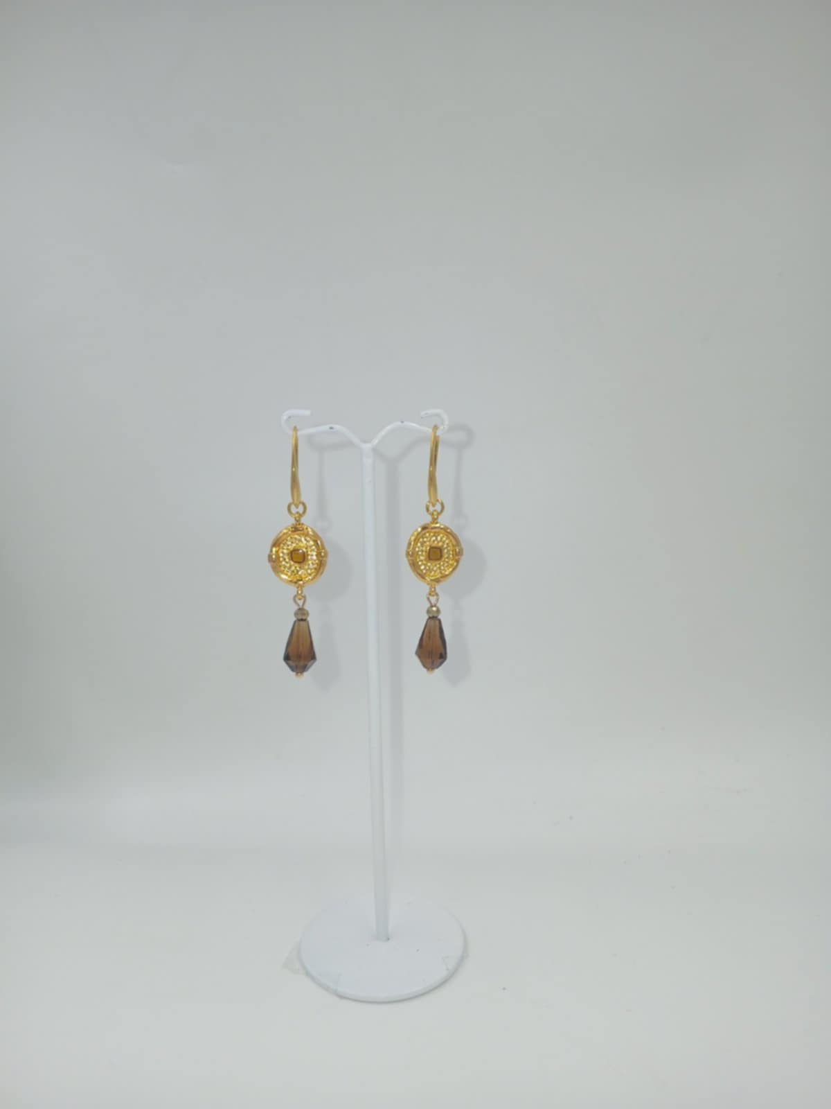 Χειροποίητα Σκουλαρίκια, ελληνικής σχεδίασης και κατασκευής, από επιχρυσωμένο ατσάλι με κρυσταλλάκια. Μπορούν να φορεθούν καθημερινά, αλλα και σε ιδιαίτερες περιστάσεις.