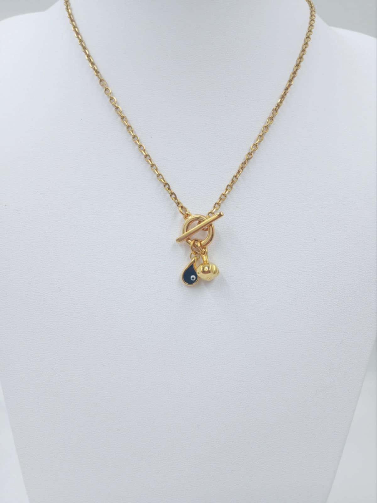 Χειροποίητο κολιέ με σκορδάκι και ματάκι, ελληνικής κατασκευής και σχεδίασης, από ορείχαλκο επιχρυσωμένο. Εξαιρετική ποιότητα και ιδιαίτερα πρωτότυπο σχέδιο, το οποίο προσδίδει λάμψη σε κάθε εμφάνιση.